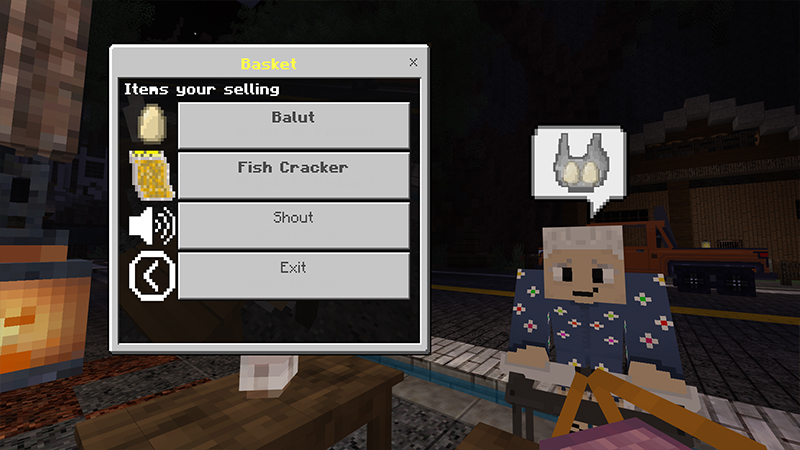 Balut là một thế giới chất lượng cao trên Minecraft Marketplace, nơi bạn sẽ hóa thân vào một cậu bé bán balut và sống sót qua năm đêm trong thị trấn hoang vắng. Mỗi đêm càng lúc càng u ám hơn khi xuất hiện những bóng hình đột biến, tiếng động rợn người và ngôi nhà bỏ hoang chứa đựng bí mật. Bạn có thể khai phá sự thật về những người mất tích và chiến đấu để sống sót tới đêm cuối.