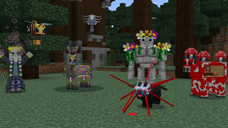 • Creepers bắn phá tiệc tùng (“party-popping Creepers”) và Mooshrooms đa năng đầy hài hước.