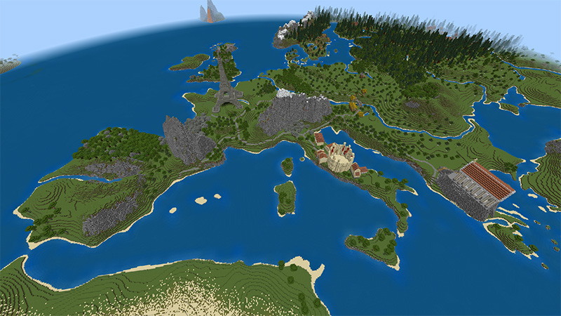 Our Earth Europe, MobBlocks Minecraft World, realistic Europe Minecraft, Minecraft landmarks Europe, Minecraft educational world, Minecraft Marketplace Europe, Bedrock geography map