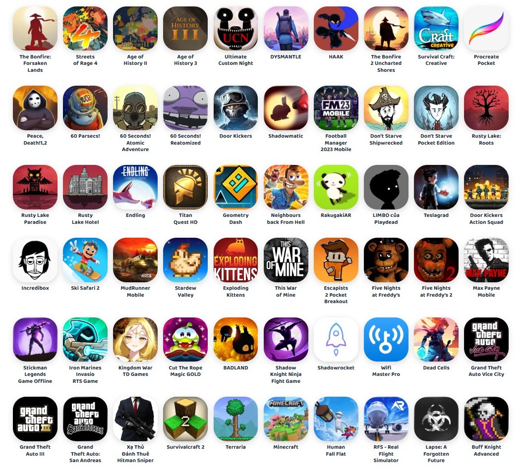 Tài khoản bao gồm hơn 50 game trả phí và game premium thuộc nhiều thể loại như sinh tồn, nhập vai, chiến thuật, kinh dị, giải đố, mô phỏng và hành động. Chỉ cần đăng nhập là có thể tải và trải nghiệm ngay.